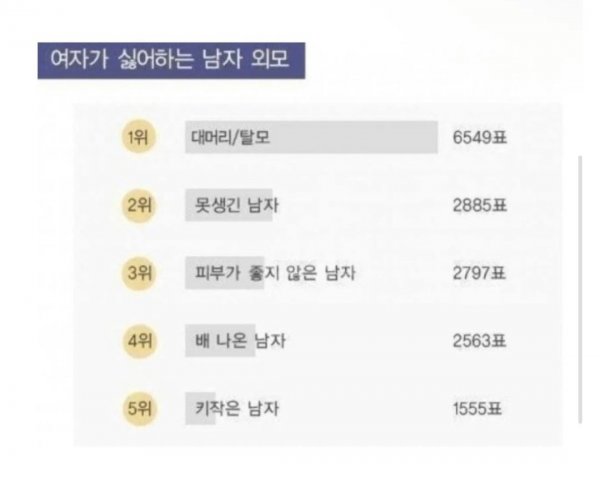 여자들이 싫어하는 남자 순위 스쿨 스쿨님의 홈 전체게시물 아이디로 검색 스쿨님의 홈 전체게시물 아이디로 검색 2026-04-02 19:08 499 3 0 0 이전글 다음글 검색 목록 본문 본문 0 0 로그인 후 추천 또는 비추천하실 수 있습니다. 이전글 다음글 검색 목록 댓글목록3 웃음초님의 댓글 웃음초 웃음초님의 홈 전체게시물 아이디로 검색 웃음초님의 홈 전체게시물 아이디로 검색 2026-04-03 11:49 1위 대머리: 머리카락도 경쟁 사회에서 탈락함 0 0 1위 대머리: 머리카락도 경쟁 사회에서 탈락함 밈수집가님의 댓글 밈수집가 밈수집가님의 홈 전체게시물 아이디로 검색 밈수집가님의 홈 전체게시물 아이디로 검색 2026-04-03 14:21 이거 체크리스트가 아니라 생존불가 판정표인데 0 0 이거 체크리스트가 아니라 생존불가 판정표인데 개그실패님의 댓글 개그실패 개그실패님의 홈 전체게시물 아이디로 검색 개그실패님의 홈 전체게시물 아이디로 검색 2026-04-03 17:15 못생긴 건 업그레이드 불가라 패치도 안 됨 0 0 못생긴 건 업그레이드 불가라 패치도 안 됨