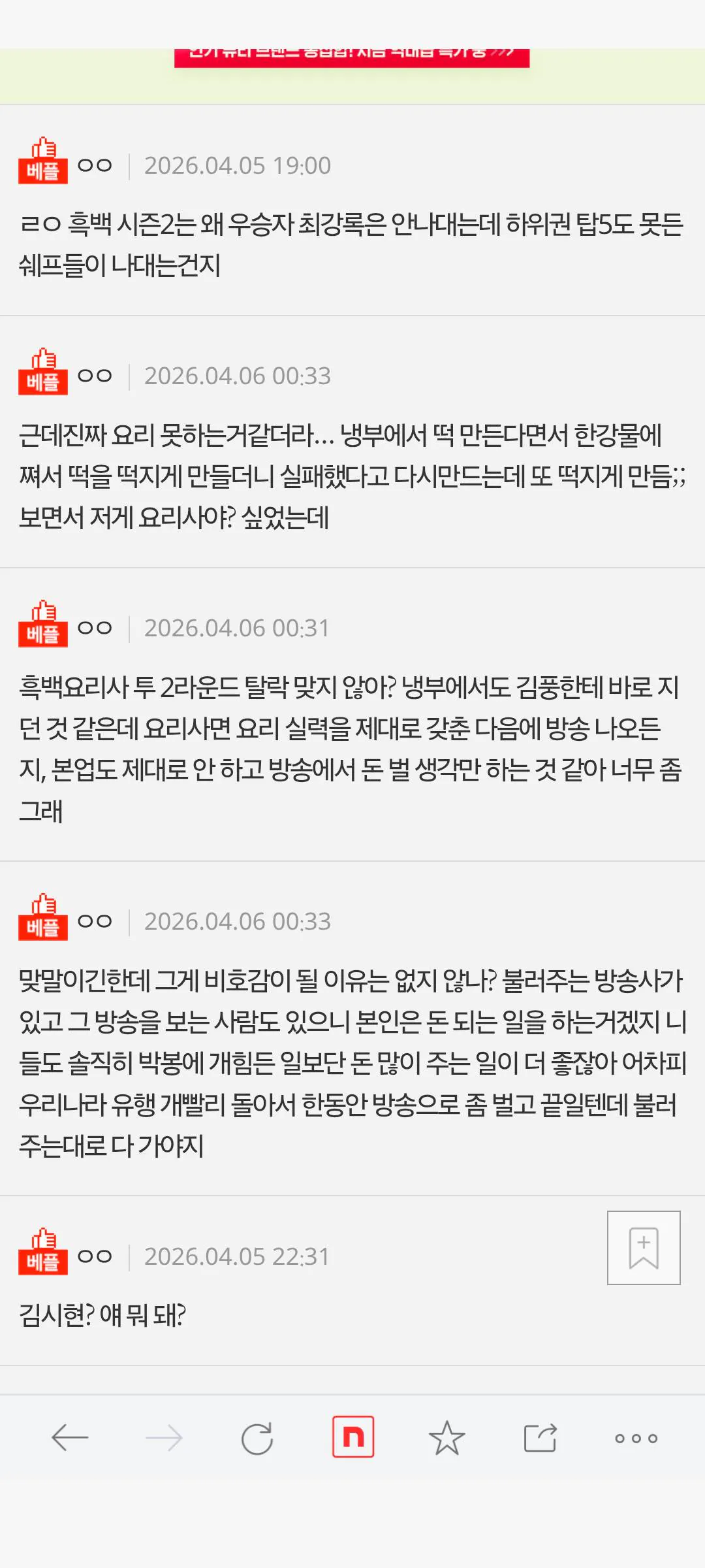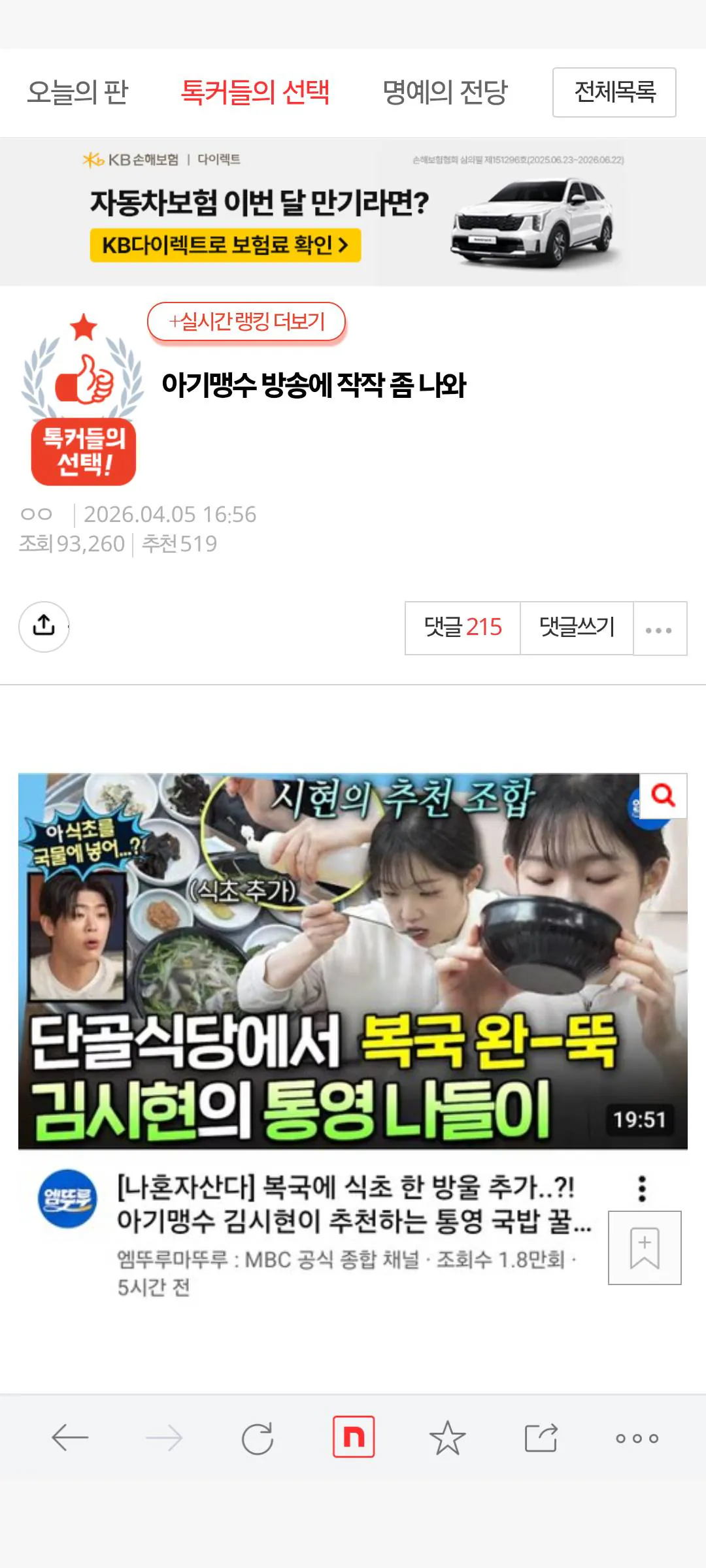 아기맹수 방송 작작 좀 나와 로나 로나님의 홈 전체게시물 아이디로 검색 로나님의 홈 전체게시물 아이디로 검색 2026-04-06 19:17 185 2 0 0 이전글 다음글 목록 본문 본문 0 0 로그인 후 추천 또는 비추천하실 수 있습니다. 이전글 다음글 목록 댓글목록2 웃음초님의 댓글 웃음초 웃음초님의 홈 전체게시물 아이디로 검색 웃음초님의 홈 전체게시물 아이디로 검색 2026-04-07 09:38 요리 프로그램인데 시청자가 더 매운맛임ㅋㅋ 0 0 요리 프로그램인데 시청자가 더 매운맛임ㅋㅋ 먹짱전문님의 댓글 먹짱전문 먹짱전문님의 홈 전체게시물 아이디로 검색 먹짱전문님의 홈 전체게시물 아이디로 검색 2026-04-07 16:32 방송 많이 나오는 이유? 국밥 한 숟갈 뜨는 순간 납득됨 0 0 방송 많이 나오는 이유? 국밥 한 숟갈 뜨는 순간 납득됨