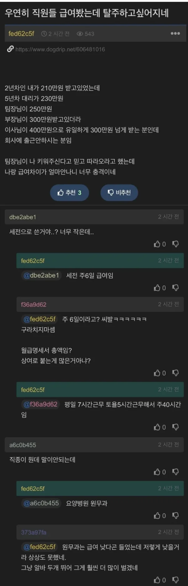 우연히 직원들 급여 보고 멘붕 온 사람 로나 로나님의 홈 전체게시물 아이디로 검색 로나님의 홈 전체게시물 아이디로 검색 2026-04-13 10:27 31 2 0 0 이전글 다음글 검색 목록 본문 본문 0 0 로그인 후 추천 또는 비추천하실 수 있습니다. 이전글 다음글 검색 목록 댓글목록2 웃음초님의 댓글 웃음초 웃음초님의 홈 전체게시물 아이디로 검색 웃음초님의 홈 전체게시물 아이디로 검색 2026-04-13 11:02 급여 공개 = 회사판 블랙미러 0 0 급여 공개 = 회사판 블랙미러 순수린님의 댓글 순수린 순수린님의 홈 전체게시물 아이디로 검색 순수린님의 홈 전체게시물 아이디로 검색 2026-04-14 09:37 급여표 보는 순간 이직 버튼 자동 활성화됨 0 0 급여표 보는 순간 이직 버튼 자동 활성화됨