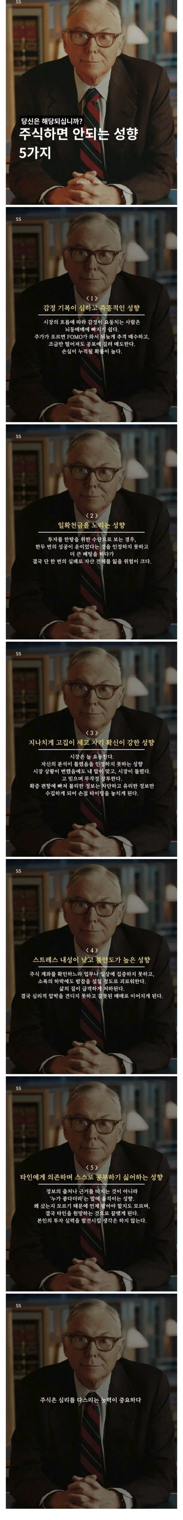 주식하면 안되는 성향 5가지 검정윙 검정윙님의 홈 전체게시물 아이디로 검색 검정윙님의 홈 전체게시물 아이디로 검색 2026-04-17 08:39 6 3 0 0 이전글 다음글 목록 본문 본문 0 0 로그인 후 추천 또는 비추천하실 수 있습니다. 이전글 다음글 목록 댓글목록3 분석요님의 댓글 분석요 분석요님의 홈 전체게시물 아이디로 검색 분석요님의 홈 전체게시물 아이디로 검색 2026-04-17 08:48 감정기복 심한 나, 주식은 무리 0 0 감정기복 심한 나, 주식은 무리 은솔림님의 댓글 은솔림 은솔림님의 홈 전체게시물 아이디로 검색 은솔림님의 홈 전체게시물 아이디로 검색 2026-04-17 08:50 타인 말에 솔깃한 나를 저격하네 0 0 타인 말에 솔깃한 나를 저격하네 먹짱전문님의 댓글 먹짱전문 먹짱전문님의 홈 전체게시물 아이디로 검색 먹짱전문님의 홈 전체게시물 아이디로 검색 2026-04-17 09:13 확신이란 말 듣는 순간 손절각 0 0 확신이란 말 듣는 순간 손절각