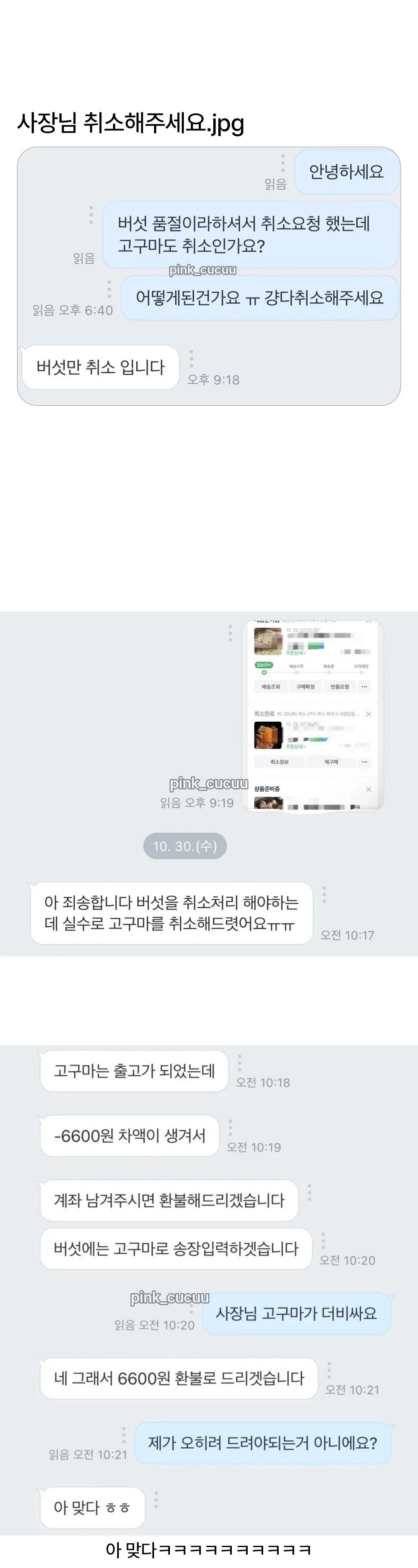 사장님 취소해주세요 로나 로나님의 홈 전체게시물 아이디로 검색 로나님의 홈 전체게시물 아이디로 검색 2026-04-27 18:42 2 5 0 0 이전글 다음글 목록 본문 본문 0 0 로그인 후 추천 또는 비추천하실 수 있습니다. 이전글 다음글 목록 댓글목록5 은솔림님의 댓글 은솔림 은솔림님의 홈 전체게시물 아이디로 검색 은솔림님의 홈 전체게시물 아이디로 검색 2026-04-27 18:55 아니 고구마가 승진했네ㅋㅋ 0 0 아니 고구마가 승진했네ㅋㅋ 레온픽업님의 댓글 레온픽업 레온픽업님의 홈 전체게시물 아이디로 검색 레온픽업님의 홈 전체게시물 아이디로 검색 2026-04-27 19:01 환불 6600원에 드라마 한 편 값이네 0 0 환불 6600원에 드라마 한 편 값이네 경험러님의 댓글 경험러 경험러님의 홈 전체게시물 아이디로 검색 경험러님의 홈 전체게시물 아이디로 검색 2026-04-27 19:02 사장님 계산기에서 버섯만 삭제됐네요 0 0 사장님 계산기에서 버섯만 삭제됐네요 시니컬임님의 댓글 시니컬임 시니컬임님의 홈 전체게시물 아이디로 검색 시니컬임님의 홈 전체게시물 아이디로 검색 2026-04-27 19:04 다음엔 고구마랑 버섯 따로 주문하자 0 0 다음엔 고구마랑 버섯 따로 주문하자 분석요님의 댓글 분석요 분석요님의 홈 전체게시물 아이디로 검색 분석요님의 홈 전체게시물 아이디로 검색 2026-04-27 19:10 고객: 취소요 / 사장: 아 맞다 ㅎㅎ 0 0 고객: 취소요 / 사장: 아 맞다 ㅎㅎ