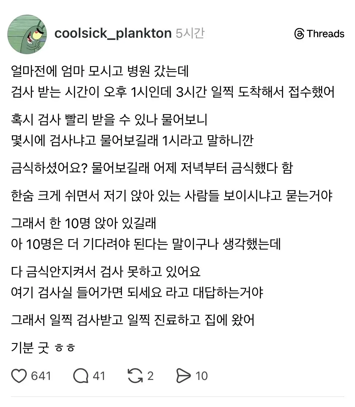 검사 빨리 받을 수 있냐는 질문에.. '저기 환자 열분 기다리는거 보이세요???'