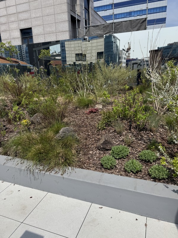 분수 나오고, 건물은 힙하고,