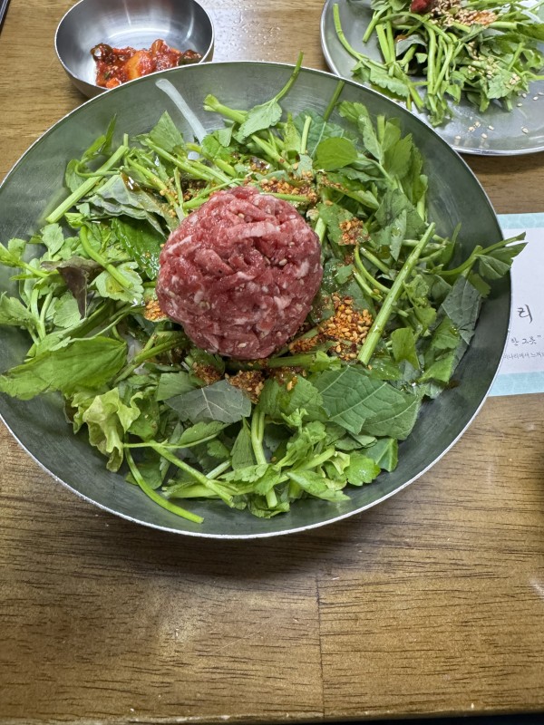 미나리 향이 육회랑 만나서 상큼함이 폭발하는, 입맛 확 살아나는 비빔밥